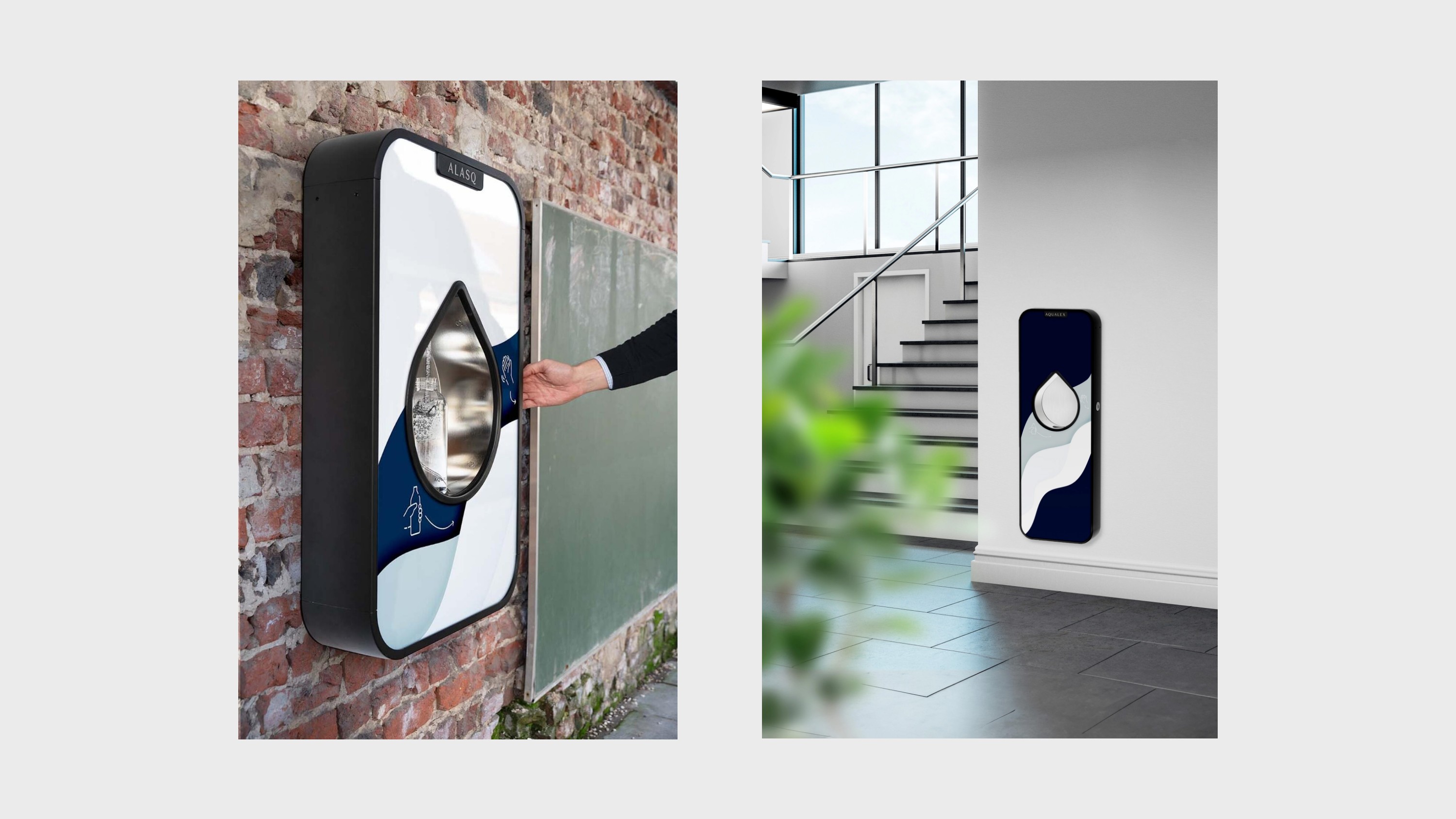 As part of our strategic brand development, we recommended that the outdoor water stations be separated from the high-end luxury taps of AQUALEX. This resulted in the creation of the brand ALASQ, a name that subtly references AQUALEX while establishing its own identity. ALASQ evokes associations with the crisp, clear waters of Alaska and was designed to appeal to a different target audience, differentiating itself by materials and use cases. The name underwent rigorous legal checks to ensure availability, and the connection to AQUALEX was maintained through the incorporation of familiar brand elements, such as the “AL” and “Q.”