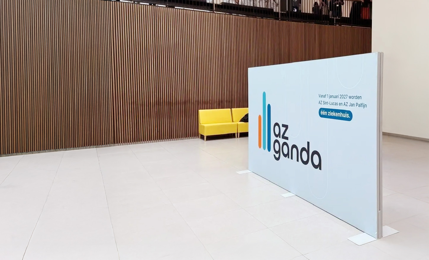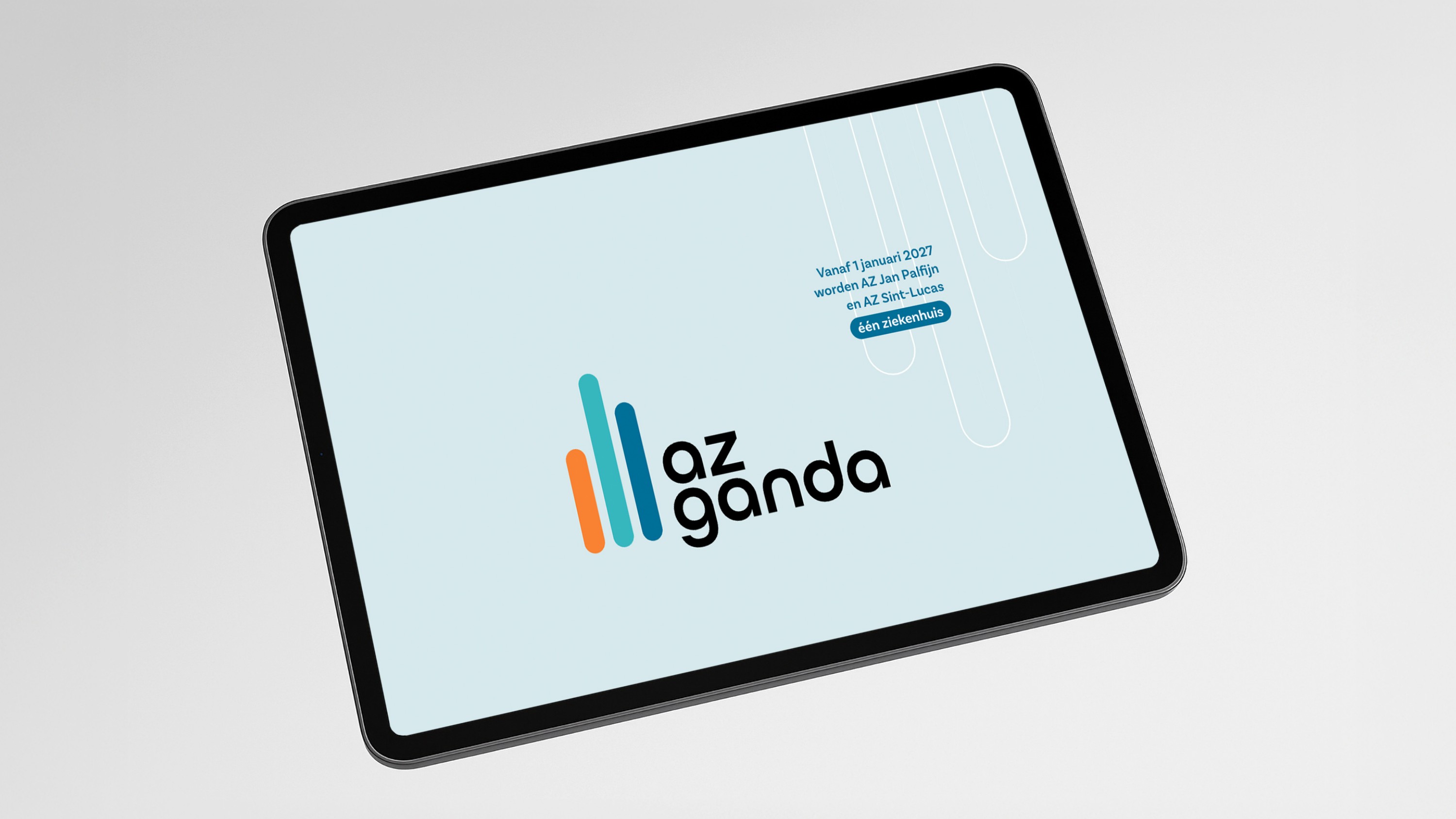 Het fusieziekenhuis beschikt vandaag over de naam AZ Ganda: herkenbaar in de Gentse regio, inclusief in klank en betekenis, en juridisch beschermd in de Benelux. De naam wordt door beide campussen gedragen en vormt een symbool van de nieuwe samenwerking. Samen bieden naam en visuele identiteit een sterk fundament voor de verdere uitrol van huisstijl en communicatie, met de officiële invoering voorzien in 2027.