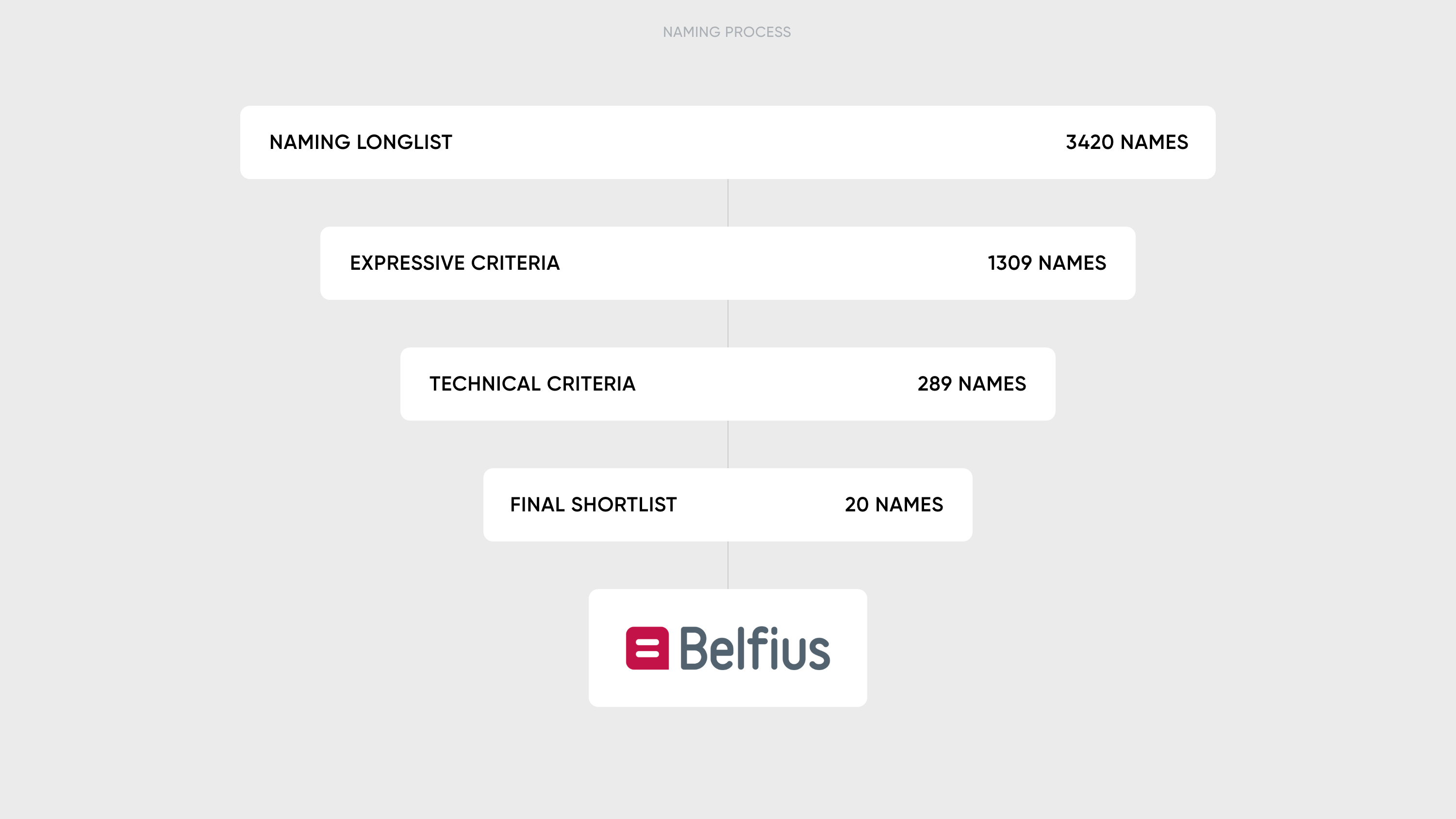 Toen de Frans-Belgische holding Dexia in ernstige financiële problemen kwam, leed de Belgische bank- en verzekeringsentiteit, eveneens genaamd Dexia, onder de slechte reputatie van het moederbedrijf. In deze turbulente periode was het essentieel om een duurzame oplossing te vinden om verdere schade aan de Belgische entiteit te voorkomen. Een nieuwe merknaam was nodig om de bank los te koppelen van haar problematische verleden en het vertrouwen van het publiek te herstellen.