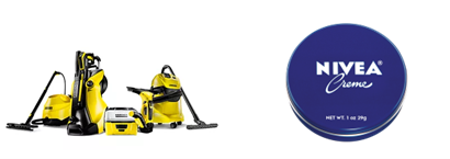 3. Kleur – Kleuren roepen specifieke associaties op en maken het merk herkenbaar, zoals het geel van Kärcher of het blauw van NIVEA.