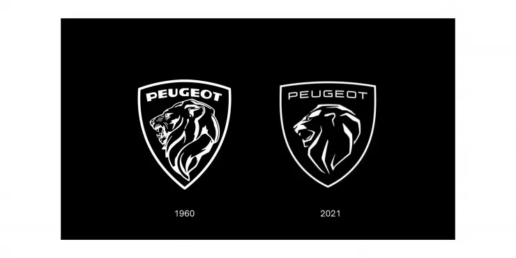 Bij de rebranding van het logo keek het Peugeot Design Lab terug op het logo uit 1960 — een veelvoorkomend verschijnsel in 2021 cf Burger King. Tegelijkertijd gingen ze op zoek naar een meer abstracte interpretatie van het logo cf Volkswagen.